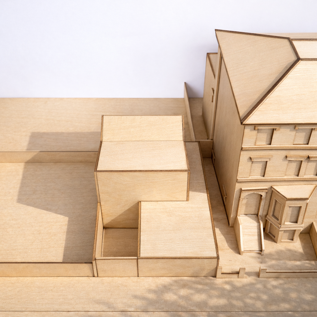 Working closely with our planning consultant, we developed this scheme for a new house in Camberwell after a previous application had been refused. The design carefully addresses the limitations of the site, splitting the house between a sunken and a raised ground floor to maximise space, light and area. A two-level courtyard garden creates a sequence of distinct moments, bringing light and calm into the heart of the home. Externally, the house picks up on the heights and materials of the existing architectural frontages, mirroring the street’s asymmetrical window pattern, two and one, and using limestone cladding to sit comfortably within its context. Internally, generous natural light is drawn in from every available angle, creating a sense of openness throughout.